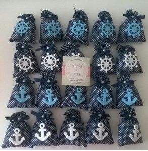 Yine çoktan yola çıkan lavanta kesesi siparişim. Bu sefer lacivert puantiyeli kumaş üzerine keçe çapa ve dümen figürleri ekledim , çok da cici oldular 😀