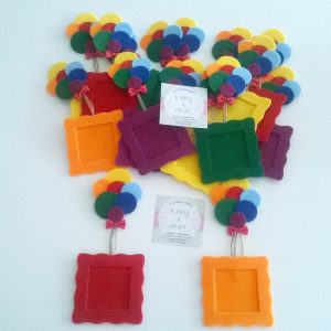 Artık bir doğum günü klasiği olan tasarımı bana ait gökkuşağı balon demetli çerçeve magnetler. Yine bir doğum günü için hazırlandı 🙂